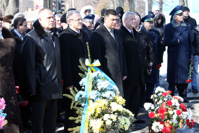 Керівництво району, представники трудових колективів, громадських та політичних організацій, учнівська молодь поклали живі квіти до пам’ятника поета.