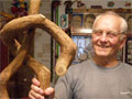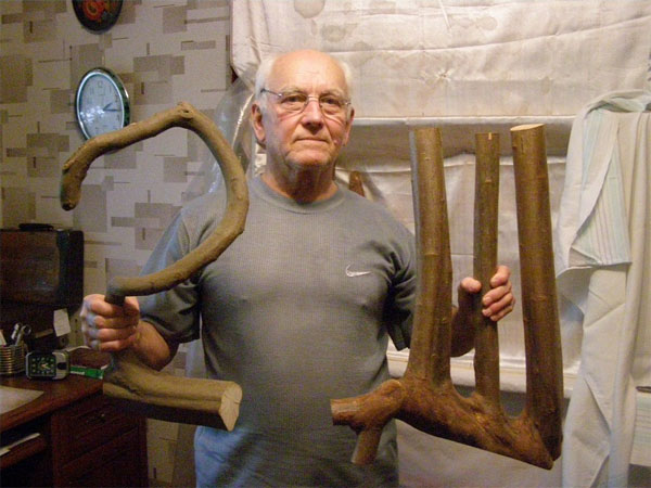 - Коли я жив у Броварах, то ходив у ліс, що в кілометрі від мого помешкання, на гімнастику. Там і побачив, як одна гілляка зрослась з іншою. Ну як тут не зупинитись, це ж таке диво природнє, - розповідає Микола Габрійчук. –Я ще не знав, що з цим робити і навіщо вона мені, проте додому приніс. А далі були «Я», «W». Буває, потрапляють на очі однакові літери, але різної будови, різної породи дерев. Наприклад, була у мене «Х», а потім знайшов другу. Тепер їх двоє: тато і мама. Я запам’ятовую гілку, потім беру ножівку і вирізаю. Найліпші для моєї абетки виявились ліщина, граб, сосна, черемуха, яблуня. Бувало, як піду зранку до лісу, то повертаюсь аж о 16 додому.