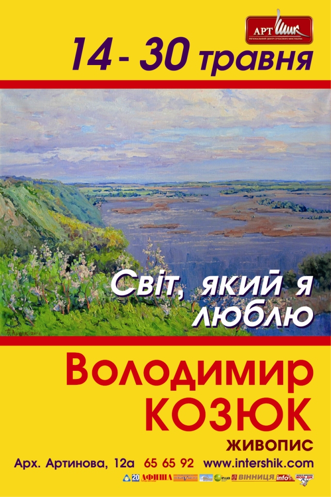Региональный центр современного искусства "Арт-Шик" приглашает Вас 14 мая (понедельник) в 16:00 на презентацию выставки "Мир, который я люблю" заслуженного художника Украины Владимира Козюка. На выставке будет представлено около сорока пейзажных работ, написанных как в 2011-12 гг. так и в более ранний период.