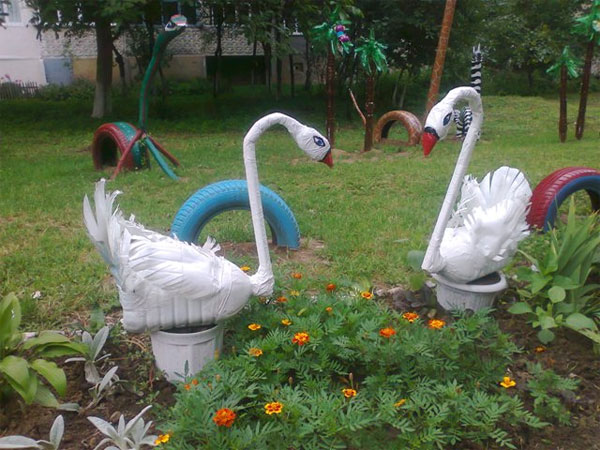 «Лебедів робили з пластикових пляшок, в середину насипали пісок, шию зробили з шматка деревини і примотали скотчем», - каже Олександр Ткачук.