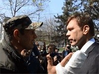 Олег Царьов із георгієвською стрічкою на грудях спробував провідати у миколаївській лікарні сепаратистів, яких днями розігнали з проросійського мітингу. Після словесної перепалки здійнялась бійка, у нардепа полетіли курячі яйця. У свою чергу, ображений Царьов пробував прорватися крізь власну охорону і дати здачі. Міліція здебільшого розгублено стояла поруч, на відео видно, як одна з машин правоохоронців просто помчалась геть.