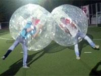 Бампербол – вид спортивного развлечения, придуманный в 2011 году в Норвегии. Цель игры такая же, как и в футболе — забить мяч в ворота соперника, но для этого игроки облачаются в специальные, двенадцатикилограммовые, надувные шары. Соревнуются две команды, в каждой по 3-5 человек. Матч разбит на два тайма по 10-15 минут. Можно толкать соперника, сбивать его с ног, делать сальто, ведь надувной шар полностью защищает от увечий. Играть в бампербол не могут только дети до двенадцати лет, люди ниже 150 см и весящие более 100 кг. Игра уже произвела фурор по всему миру и приобрела миллионы поклонников. Теперь вот добралась до Винницы.