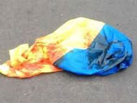 Міліціонери встановили, що чоловік кинув прапор у грубку. Побачивши, що полум’я не горить, зловмисник почав підпалювати Державний символ запальничкою. Його дії припинили свідки.