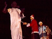 Для Снігуронька пошили спеціальний білий костюм, а щоб одягти його використали кран. Тепер до кінця роботи Резиденції Діда Мороза скульптура дівчини-пісні буде стояти святково вбрана.