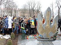 Молоді люди прийшли з прапорами, лампадками та квітами. «Я не могла не долучитися до цієї акції і вважаю, що потрібно пам’ятати своїх героїв, які віддали своє життя заради нас», – каже вінничанка Олена. Студент Володимир, який поклав до пам’ятника квіти та лампадку, зазначив: «Світла пам’ять справжнім українцям, ми ніколи їх не забудемо».
