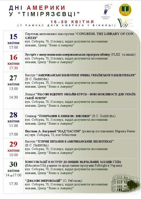 Вінничан запрошують на Дні Америки у "Тімірязєвці"