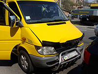 Вчора близько 12.35 31-річний водій автомобіля «Мерседес Спрінтер» допустив зіткнення з автомобілем «Ауді». Від удару в задню частину іномарка зіштовхнулась з мікроавтобусом «Рено Трафік», який рухався попереду в попутному напрямку.