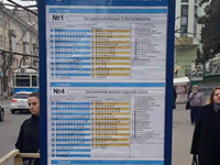 У минулому році на зупинках громадського транспорту почали встановлювати знаки та інформаційні таблички із розкладом руху. Наразі вони вже облаштовані на всіх трамвайних (79 об’єктів) та тролейбусних (146 об’єктів) зупинках. Якщо на зупинці зупиняється тільки один вид транспорту, то щит має інформацію тільки про маршрути та розклад руху цього виду транспорту. А якщо різні види транспорту – то розклад руху комплексний.