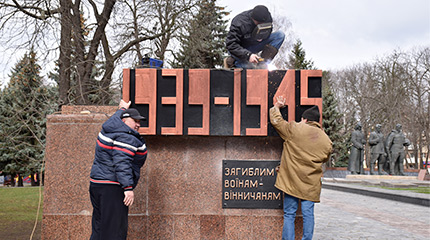 А 14 березня на Меморіалі Слави демонтували декілька цифр, які утворювали напис «1941-1945», і на їх місці розмістили нові: «1939-1945». На думку керівника Вінницького історичного товариства, історика Олександра Федоришена заміна дати «1941» на «1939» є логічною, адже за цифрами 1939, 1940, 1941 стоять десятки тисяч поламаних війною доль українських родин.
