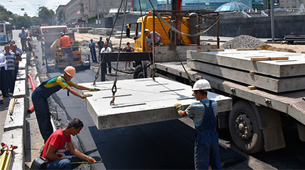 «Сьогодні на площі Гагаріна відбулася закладка першої плити по новим технологіям. Їх кладуть на гарячий асфальт, щоб вони щільно зафіксувалися на поверхні. Ця технологія дасть можливість більш «м’якому» руху трамваїв. Встановлення таких плит - це перший етап капітального ремонту площі. Паралельно передбачається капітальний ремонт зливової каналізації. Завершаються роботи асфальтуванням проїжджої частини», – розповідає міський голова Сергій Моргунов.