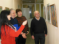 Грищук Іван працює в жанрі декоративної композиції, портрету, натюрморту, жанрової картини, а також у галузі книжкової графіки та храмового розпису. Учасник обласних, республіканських виставок. Гринюк Леонтій - заслужений діяч мистецтв України з 1999 р., живописець, графік, художник декоративно - прикладного мистецтва. Учасник обласних, республіканських та міжнародних виставок.Пелешко Олександр працює у техніці акварельного і воскового живопису. Автор-ілюстратор до творів Т. Г. Шевченка. Якорева Наталія - графік, учасниця обласних і республіканських виставок. Жілінскайте Крістіна - Заслужений художник України з 2013 р. Учасниця республіканських (в Литві та в Україні), всесоюзних та міжнародних виставок. Працює в галузі станкового живопису, класичного вітража та художнього скла, графіки.Запрошуються всі цінителі мистецтва відвідати виставку, яка триватиме до 24 січня 2017 року. Бібліотека працює з 10 до 18 години. Вихідний день – середа.