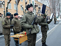 Привітати новобранців прийшли керівники області та міста, духовенство, батьки військовослужбовців, родичі, друзі.У вітальному слові голова обласної державної адміністрації підкреслив: «Нині перед Україною постали дуже великі виклики. Прийняття Присяги на вірність народові України має надзвичайно важливе символічне значення для кожного з вас. В першу чергу – це Присяга на вірність вашим сім’ям, впевненість у захисті нашої країни, яка переживає непрості часи».Окрему подяку Валерій Коровій адресував батькам солдатів- за виховання синів-патріотів: «Звичайно, ви хвилюєтесь і переживаєте, але це велике свято – дивитися сьогодні в очі цих прекрасних молодих людей, на їх військовий вишкіл. Тож нехай оберігає Бог усіх вас, ваших синів і дочок і всю нашу державу Україну».Тимчасово виконуючий обов’язки заступника начальника Західного територіального управління Національної гвардії України по роботі з особовим складом підполковник Геннадій Пітик зазначив: «На сьогоднішній день у в/ч 3008 прийняли присягу 96 військовослужбовців, з них військовослужбовців строкової служби – 81, військовослужбовців контрактної служби – 15, серед них 3 жінки. В подальшому строковики будуть проходити службу у військових частинах, що розташовані у Калинівці та Вінниці. До зони АТО ці військовослужбовці не будуть залучатись. Бійці Національної гвардії, які добровільно пішли служити за контрактом, можуть бути залучені для захисту суверенітету та незалежності нашої держави та брати участь в антитерористичній операції».Після прийняття Присяги, відбулось шикування та урочисте проходження військовослужбовців. На завершення заходу новобранці продемонстрували уміння та навики у веденні рукопашного бою, застосуванні засобів захисту, службової дресури при затриманні порушника тощо.Коротке прощання з родичами і друзями, фотографія на пам’ять - і бійці, які щойно присягнули на вірність Україні, вирушають до місця проходження військової служби.