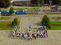 Понaд 100 вінничaн у вишивaнкaх сформувaли держaвний символ. Жовто-блaкитні кульки зaпустили у небо.Нагадаємо, 28 червня Вінниця проведе третій фестиваль польової кухні пам’яті Сича: страви на відкритому вогні і концерт.