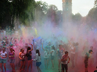 Варто зазначити, що отримати сипучі фарби безкоштовно могли всі охочі. Перед стартом «битви» холі ведучі «розігріли» учасників конкурсами і танцями.Кольорову фарбу підкидали у повітря, сипали на голову і розмальовували нею обличчя.