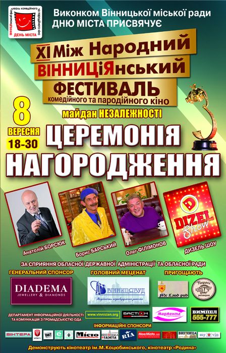 Цей рік не буде виключенням. Вже зараз всю конкурсу програму можна подивитись на нашому сайті: www.vinnician.org. А 8 вересня на Майдані Незалежності відбудеться Церемонія Нагородження переможців фестивалю, де просто неба глядачі побачать кращі комедійні ролики.