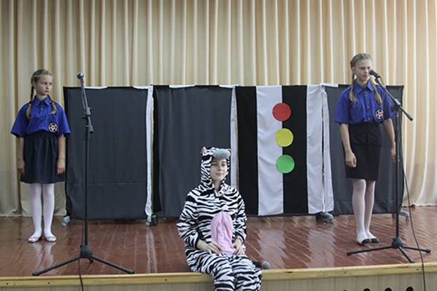 За сприяння працівників управління превентивної діяльності ЮІРівці показали школярам навчальну виставу. На сцені ожили дорожні знаки, світлофори та пішохідна «зебра». Діти з великим задоволенням брали участь у вікторинах та конкурсах, підготовлених Юними інспекторами.Малеча давала відповіді на всі поставлені запитання.