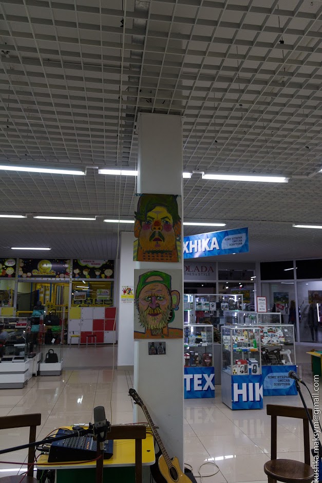 «Почалося все у Бесарабії, в Одеській області, на Тузловських лиманах. Кілька років поспіль нас запрошували створити музичну атмосферу на пленері «Колір оксамиту». За п’ять років ми так здружились з художниками, що вирішили їх запросити до нашої творчої резиденції у Демидівку. Краєвиди села і творчі люди, що завжди приїздять до нас на Демидівські вихідні слугували для художників натхненням», – розповів про арт-імпрезу Роман Кріль – лідер гурту «Очеретяний кіт» та проекту «Окіл рову». Картини з пленеру, серед яких пейзажі та портрети, знайшли своє місце на стінах торгівельного центру «Квартал». Завдяки цьому відвідувачі центру мали можливість, поглянувши на картини, відійти від світу комерції, у світ емоцій і чудових краєвидів. Адже жанрово картини представлено надзвичайно різноманітні. Художники презентують і класичний академічний малюнок, і графіку, і авангард, і імпресіонізм. Це митці з Дніпра, Запоріжжя, Одеси, Білгород-Дністровського: Катерина Білетіна, Ігор Гарькавий, Єгор Дулін, Олег Винник, Вадим Суворов, Ігор Кравець, Леся Медвідь.«Кожен з нас займається творчістю і має свою аудиторію. Ми вирішили зробити проект у якому поєднати музику і образотворче мистецтво. У одноденній експозиції ми до того ж поєднали мистецтво з бізнесом, розташувавши картини серед торгівельних точок. Нехай ці емоційні образи робіт художників нагадують відвідувачам ТЦ про прекрасне!», - побажав всім Роман Кріль, налаштовуючи вірну гітару.На імпровізованій сцені зайняли місця біля своїх портретів Микола Доляк та Роман Кріль і зазвучав неповторний подільський дзен відомих «котячих» пісень. І пісні ці яскраво змальовують красу демидівських пейзажів та пануючого на них настрою. «Там, у Демидівці, фантастично красиво! Атмосфера була чудовою», – підтверджує все почуте і побачене Сергій Гарькавий, художник-графік, організатор пленеру «Колір оксамиту».