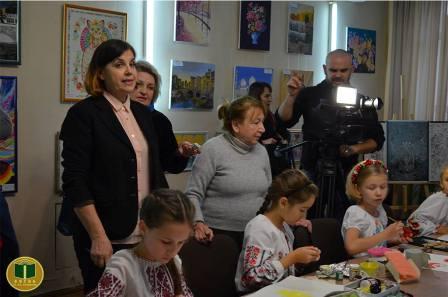 Про історію створення Центру та навчання в ньому техніці петриківського розпису, живопису та графіки розповіли викладачі – Галина Рибак та Іван Тесленко, а маленькі автори поділилися з гостями секретами власної творчості і провели майстер-клас.Казковий вигляд петриківського розпису створив святковий настрій усім присутнім виставкової зали. Лариса Сеник, заступник директора бібліотеки, привітала талановитих авторів та вручила Подяки і солодкі «золоті медалі» за участь у виставці « У межах безмежного».На виставку завітали викладачі Центру, батьки, друзі, які виступали, ділились враженнями і дякували за організацію виставки.Відвідали презентацію виставки та взяли участь у майстер-класі студенти І курсу напряму «Виконавець художньо-оформлювальних робіт» Вищого художнього професійно-технічного училища № 5 та викладачі навчального закладу, які привітали юних митців.Відкриття виставки пройшло у теплій, затишній атмосфері і супроводжувалось музичними вітаннями від вихованців Центру «Барви України».