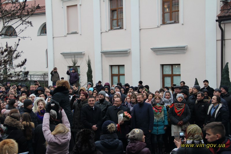 Заспівати «Щедрик» зібралися небайдужі вінничани, до них також приєдналися керівники області.Зокрема, долучилися до виконання «Щедрика» голова Вінницької облдержадміністрації Валерій Коровій, заступник голови – директор департаменту освіти та науки облдержадміністрації Ігор Івасюк та начальник управління культури та мистецтв Станіслав Городинський.