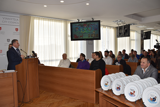 Наприкінці року у Вінницькій міській раді вже традиційно нагороджують кращих спортсменів і тренерів року, що минає. Цей рік не став винятком. Сьогодні спортсменів привітав міський голова Сергій Моргунов.