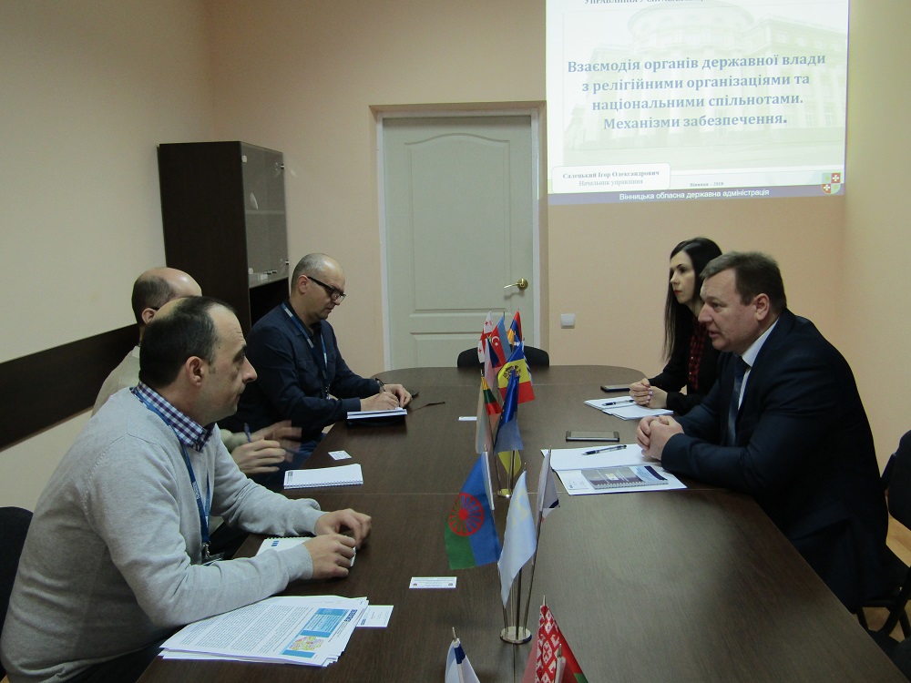 Члени Моніторингової Місії проінформували, що їх діяльність направлена на спостереження ситуації в нашій державі. Працюють вони на усій території Україні. Офіс фокус групи, що прибула на Вінниччину, знаходиться в м. Чернівці.Візит спостерігачів місії ОБСЄ до м. Вінниці відбувся з метою ознайомлення зі станом міжрелігійної та міжнаціональної ситуації в регіоні, методами і формами співпраці органів державної влади з релігійними організаціями та національними спільнотами. За інформацією Деяна Георгієвскі, представниками ОБЄС постійно проводиться моніторинг засобів масової інформації, з яких встановлено, що Вінниччина, порівняно з іншими областями, має один із найвищих рівнів толерантності.В ході спілкування, Ігор Салецький презентував гостям механізми взаємодії органів державної влади Вінниччини з релігійними організаціями та національними спільнотами, а також поінформував про кількісний склад та мережу діючих в області релігійних організацій та національних спільнот їх співвідношення із іншими регіонами та Україною загалом.