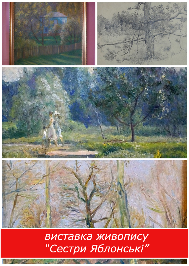 Факти життєвої та творчої біографії Тетяни Яблонської широко відомі – тільки перелік її виставок та публікацій про неї може скласти цілий том. Олена Яблонська, порівняно зі своєю знаменитою сестрою, виглядає, на перший погляд, більш камерною особистістю — і за характером, і за творчим спрямуванням. У 1960-1970-ті роки вона була більш відома як чудовий художник-ілюстратор дитячих книжок видавництва «Веселка». За 20 років роботи Олена Нилівна проілюструвала сотні дитячих книжок і тільки у 70-х знову повернулася до живопису, і відтоді не полишила його ніколи. Її живопис, своєю свіжістю та емоційністю, приваблює і глядачів на великих спілчанських виставках, потрапляє у музейні та приватні колекції.На виставці «Сестри Яблонські», можливо, уперше відбувається відкритий та безпосередній творчийдіалог сестер. У експозиції представлено твори Тетяни Яблонської періоду 1980-2000 років, коли, за визначенням мистецтвознавця Катерини Мамаєвої у статті до ювілейного каталогу художниці, «в житті і творчості, в самоусвідомленні культурний герой поступився місцем ліричному». Також на виставці експонується живопис та малюнки Олени Яблонської, які переконливо засвідчують її своєрідний та непересічний талант мисткині.