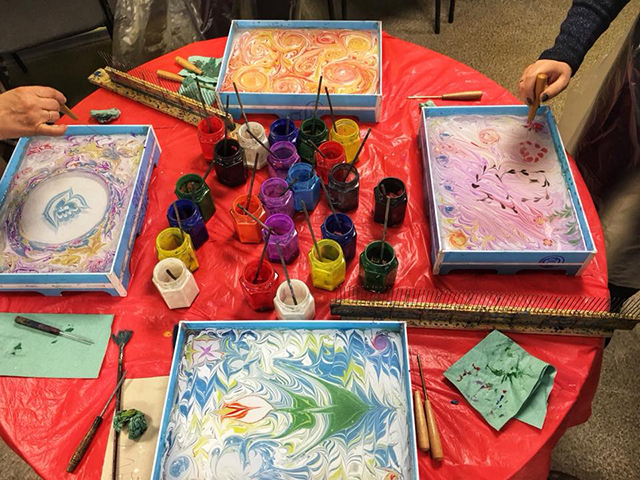 Довідка: ебру — різновид живопису, характерний для країн Сходу, продуктом якого є малюнок, створений на воді (або спеціальному розчині), і згодом обережно перенесений на папір чи іншу поверхню.
