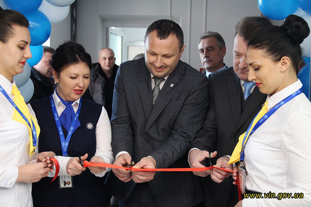 Право перерізати святкову стрічку з нагоди відкриття центру було надано Олександру Крученюку, Борису Наливайку та керівнику Департаменту Державного підприємства «Документ» Ользі Соколовій.В ході відкриття Олександр Крученюк привітав усіх працівників та відвідувачів центру та, зокрема, зазначив: «На Вінниччині дійсно надзвичайна подія, адже сьогодні відкривається сучасний центр обслуговування громадян, який буде надавати послуги громадянам із оформлення закордонних паспортів та ID-карток. Важливо, що даний центр дає можливість обслуговувати протягом дня близько 250 відвідувачів. Для проведення процедури з оформлення документів потрібно не більше 15-20 хвилин. Я переконаний, що даний сервіс стане взірцем в сфері надання послуг на Вінниччині. Але на цьому ми не зупинятимемось, є гарні задуми на майбутнє, аби в подальшому відкривати ще кращі центри та надавати якісні послуги населенню».Новий сервісний центр має 42 робочих місця, 70% від доходів за надані послуги залишатимуться на Вінниччині та спрямовуватимуться на потреби регіону. Окрім того, новий сервісний центр є дійсно зручним для відвідувачів, адже у ньому передбачено комфортні місця для очікування черги, дитячий майданчик та відокремлені закриті робочі місця, де відбувається безпосередньо оформлення закордонних паспортів та ID-карток.В свою чергу, Борис Наливайко зауважив: «Сьогоднішню подію можна по праву назвати святковою, адже протягом 2017 року до органів Державної міграційної служби Вінниччини звернулось понад 125 тис. громадян з приводу оформлення закордонних паспортів. В порівнянні з 2016 роком, то кількість звернень сягала 57 тис. Разом з тим, створення комфортних умов, які забезпечено в даному паспортному сервісі, дає змогу підвищити кількість поданих заяв громадян і покращити рівень обслуговування громадян. Окрім того, хочу наголосити, що найбільш активним є населення саме обласного центру – міста Вінниці, громада якого нараховує понад 370 тисяч. Тому, безумовно, даний центр значно покращить та прискорить обслуговування громадян та допоможе зекономити їх час».