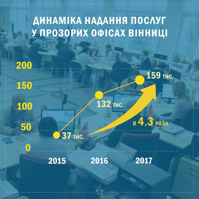 2008-го року у Вінниці вперше в Україні запрацював Прозорий офіс. А сьогодні ми спостерігаємо колосальну динаміку попиту на адміністративні послуги – їх кількість лише за останні три роки зросла у понад 4 рази. Зокрема, завдяки децентралізації у цій сфері, мета якої зробити сервіс надання адмінпослуг прозорим та зручним для людей.