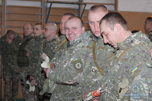50 правоохоронців з структурних підрозділів поліції Вінниччини змінять своїх колег в східному регіоні, де поліцейські залучаються до виконання завдань по захисту територіальної цілісності України.Начальник управляння превентивної діяльності ГУНП Сергій Мельник проінструктував поліцейських перед виїздом, наголосив на дотриманні законності і дисципліни під час виконання службових завдань, побажав живими та неушкодженими повернутися додому.Боєць батальйону «Вінниця» Дмитро Власюк у день від’їзду окрім настанов отримав вітання з днем народження – йому виповнилося 24 роки.Вихованці вінницької творчої майстерні «Леля» подарували поліцейським власноруч виготовлені янголів, які охоронятимуть їх в зоні небезпеки.