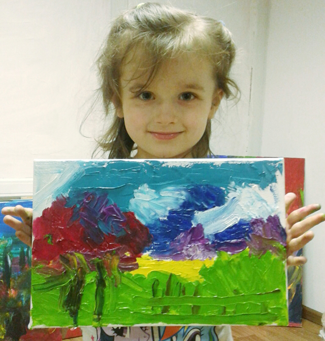 - В три роки, окрім картин у стилі абстракціонізму, Анастасія вже сама малює пейзажі, тварин і квіти, - каже мати. – Витримка донечки, уважність до деталей і кольору вражає. Одну картину може малювати дві години без перерви. У такі моменти Анастасія наче з головою поринає у світ живопису. Полюбляє перемальовувати відомі картини, вигадувати свої сюжети, нових героїв і змальовувати природу.
