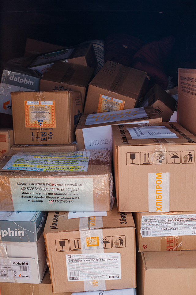 Вже п’ятий рік поспіль Вінниця допомагає військовим, які обороняють Україну на Сході. 25 квітня до хлопців на передову в зону АТО рушила чергова гуманітарна допомога. Серед іншого, повезли подарунки бійцям та дітям від студентів, школярів і вихованців дитячих садочків – каву, чай, печиво, цукерки тощо.