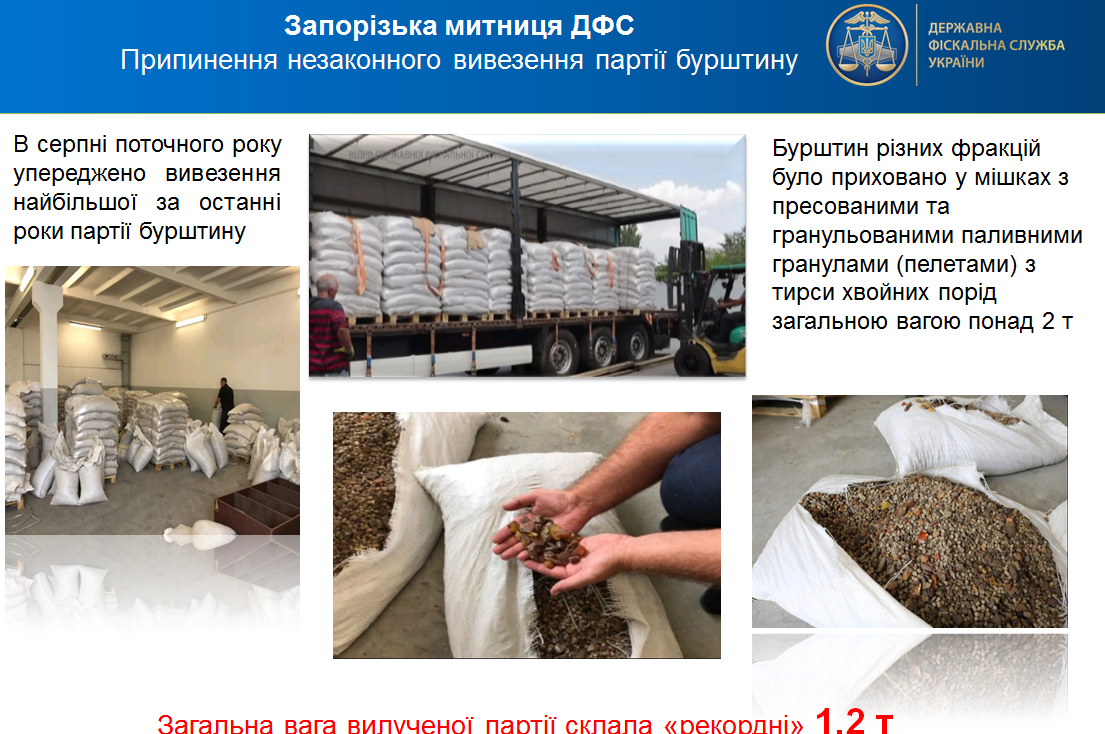 Кілька прикладів боротьби з контрабандою: в серпні поточного року було не допущено незаконного вивезення через Запорізьку митницю найбільшої за роки Незалежності партії бурштину в 1,2 тони, який було приховано у мішках з паливними гранулами; наприкінці серпня в аеропорту «Бориспіль» вилучили понад 50 кг ювелірних виробів, які намагались незаконно ввезти з Туреччини; зупинено спроби незаконного вивезення зернових культур вартістю в десятки мільйонів гривень через морські порти.