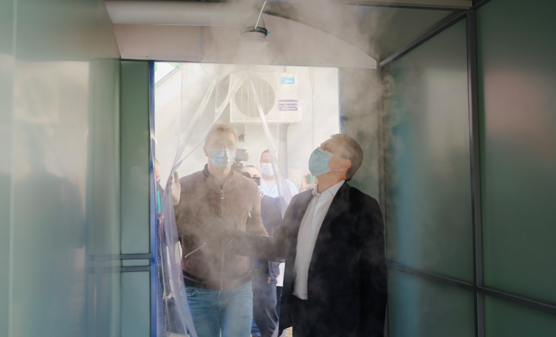 Біля центру первинної медико-санітарної допомоги №3 у Вінниці встановили експериментальну установку “тунель” для дезінфекції.