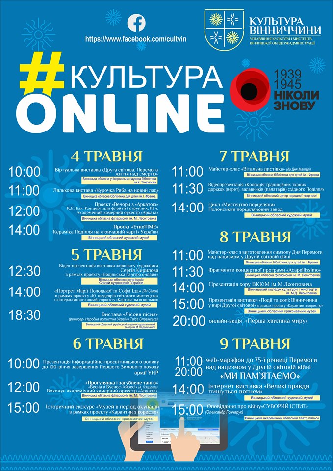 Проєкт «Культура онлайн» пропонує афішу на тиждень, з 4 по 10 травня.