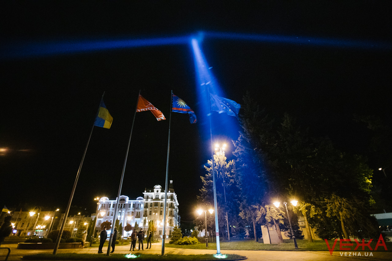 Вчора пізно ввечері Вінниця долучилася до всеукраїнської акції «Стоп культурний карантин» аби привернути увагу до культурної індустрії України та її становища під час карантинних обмежень. Відтак, близько двадцяти людей, чиновники та організатори вінницьких фестивалів та концертів, зібралися на Майдані Незалежності, аби символічно освітити нічне небо променями світла.
