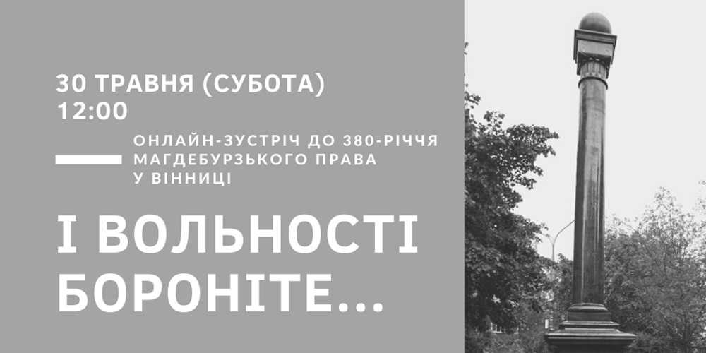 Центр історії Вінниці запрошує 30 травня о 12.00 на онлайн-зустріч до 380-річчя набуття Вінницею Магдебурзького права.